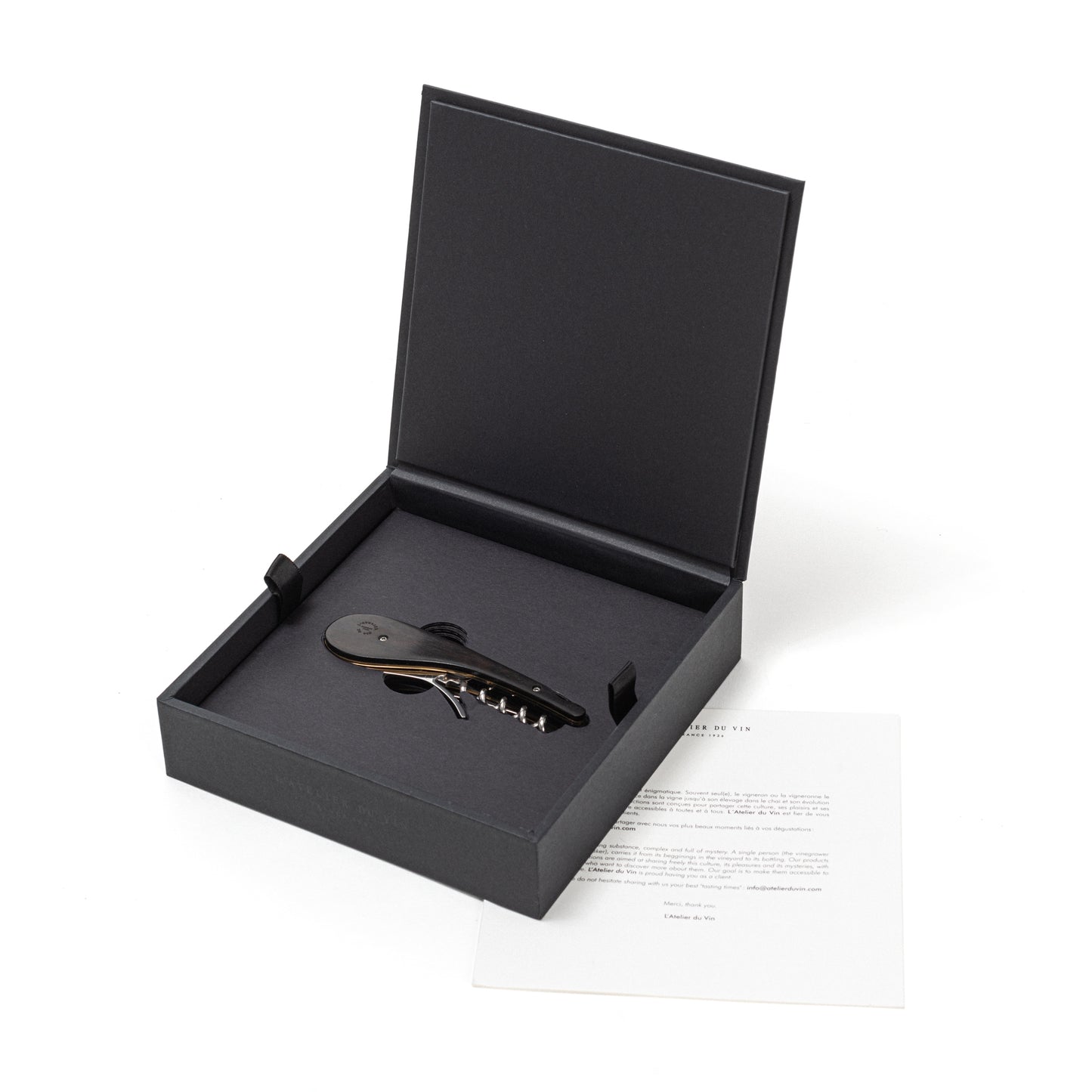 En la ruta de los viñedos regionales, durante una velada de degustación de vinos con salchichón y queso, la Soft Machine Blade – Le Pierre te será de gran ayuda. Un sacacorchos emblemático en homenaje a un gran visionario de la historia de L’Atelier du Vin.