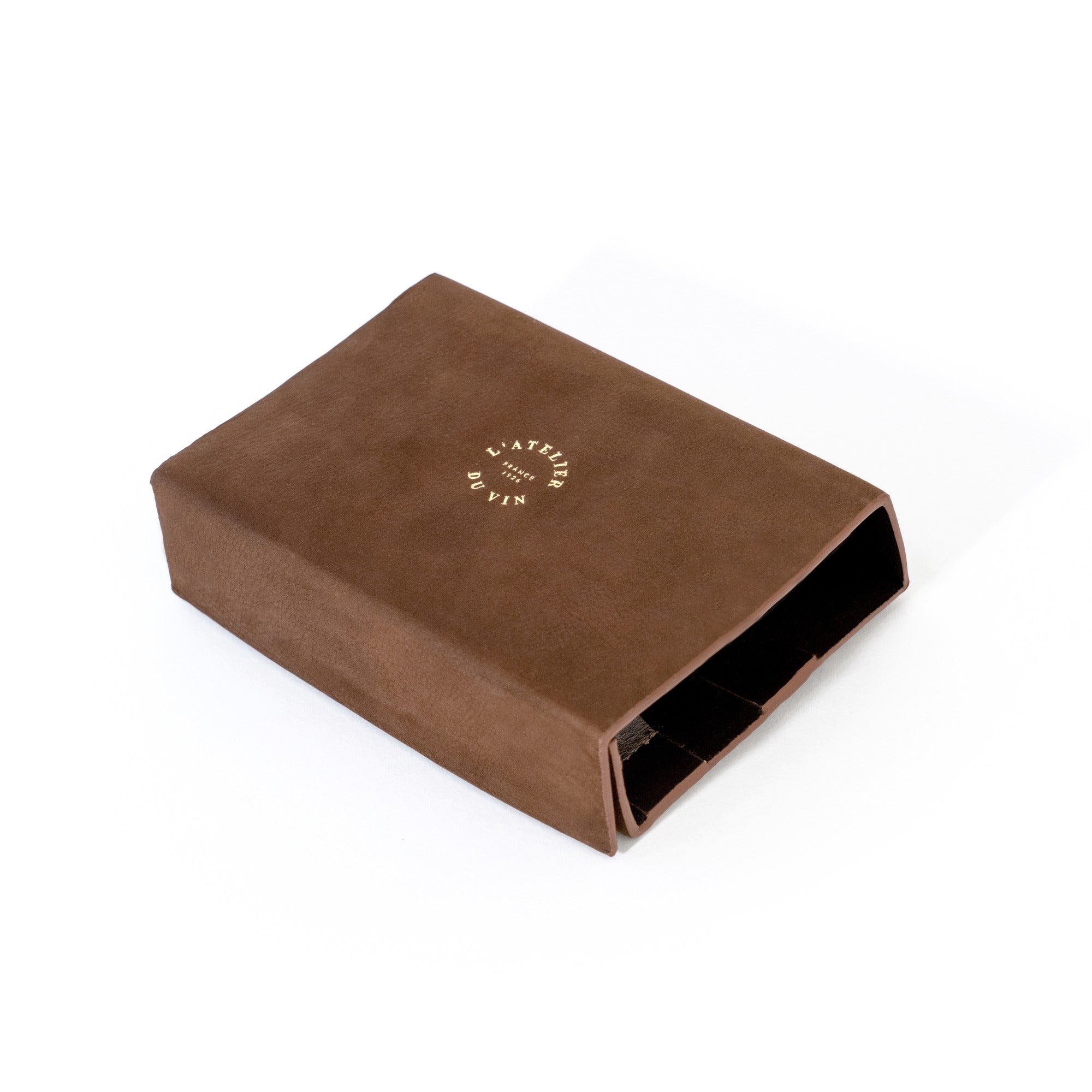 The case’s outer leather is supple, raw and sensual, whereas the inner leather is smooth and technical to avoid wine stains. Enthusiasts can also insert business cards, wine labels or little thank you notes in the hidden hand-sewn pocket.